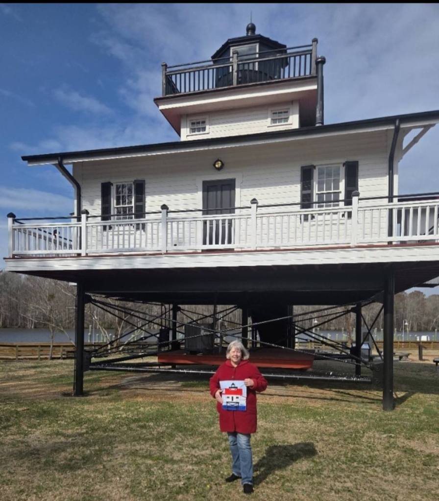 Her words convey essential details about our location, events that have shaped our history, and what Washington County is known for today. The quilt square depicting the Roanoke River Lighthouse is a symbol that links the past to the present. The Roanoke River Lighthouse was selected as the design for our quilt block because it played a vital role in early trade, regional commerce and the Underground Railroad in Washington County, NC. The lighthouse was first illuminated in 1867 at the mouth of the Roanoke River. A replica of the original lighthouse is a prominent feature in the county seat of Plymouth.